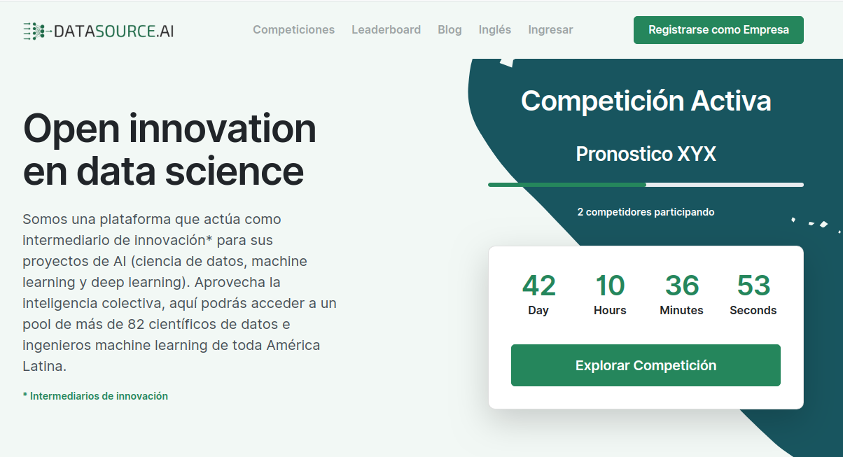 En este sentido DataSource.ai actúa como un intermediario de innovación para democratizar el acceso a las innovaciones derivadas de las nuevas tecnologías como la ciencia de datos y el machine learning.